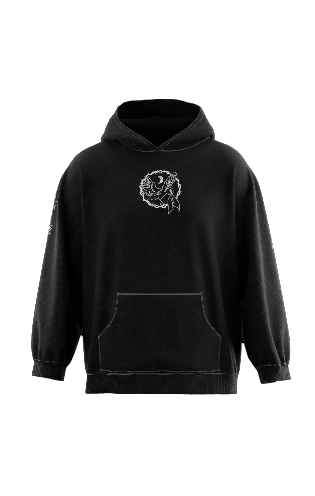 • Acid-washed black hoodie • Made from 100% premium cotton • Screen-printed designs and embroidery...